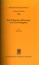 - Gawel, E.: Theoretische Annäherungen: Zur Neuen Politischen Ökonomie der Umweltabgabe, in: Benkert, W. / Bunde, J. / Hansjürgens, B. (Hrsg.): Wo bleiben die Umweltabgaben? Erfahrungen, Hindernisse und neue Ansätze (= Ökologie und Wirtschaftsforschung, Bd. 17), Marburg: Metropolis 1995, S. 47-101.